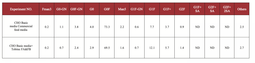 Comparative testing of glycosylation data of protein production using different culture media