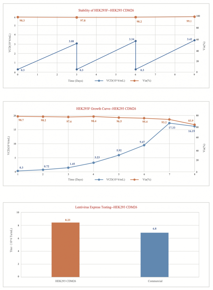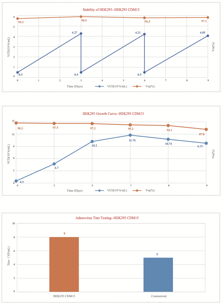 • Suitable for high density suspension culture of all derivatives of HEK293, with strong adaptability and rich nutrients.