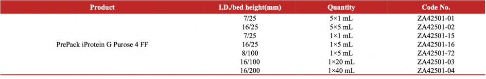 Protein Gseries antibody purification media and prepacked column