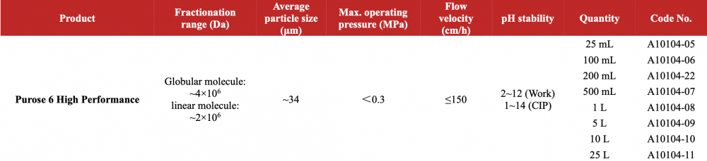Purose 6 High Performance medium particles are small size agarose-base blank microspheres with an average diameter of 34 μm obtained by crosslink.