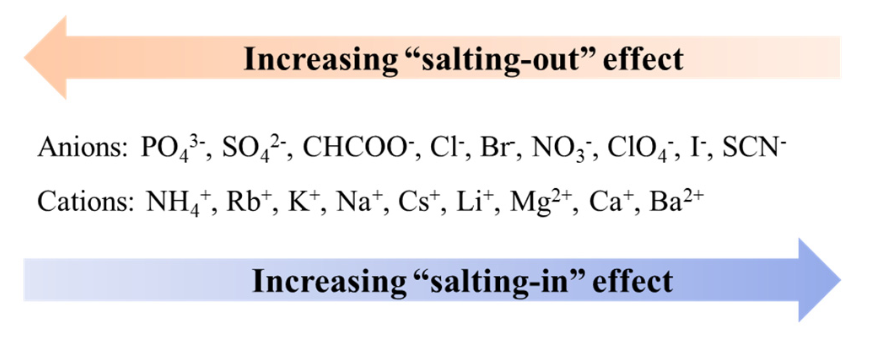 The Hofmeister series of some anions and cations arranged according to their effects on the solubility of protein in aqueous solutions.