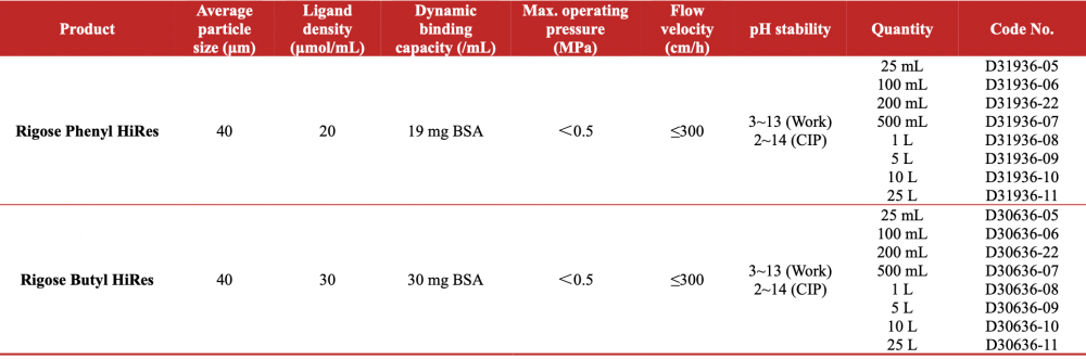 Rigose HIC HiRes series is a series of high-resolution IEX media that is based on the Rigose matrix with an average particle size of approximately 40 μm. This series media is used for the intermediate purification and polishing of proteins.